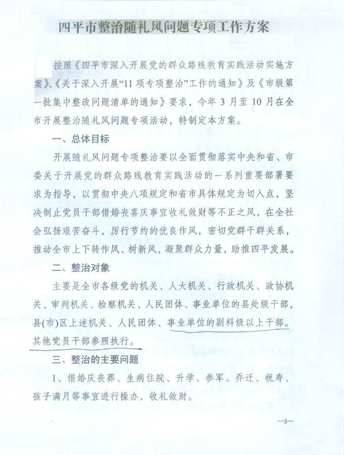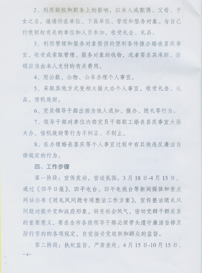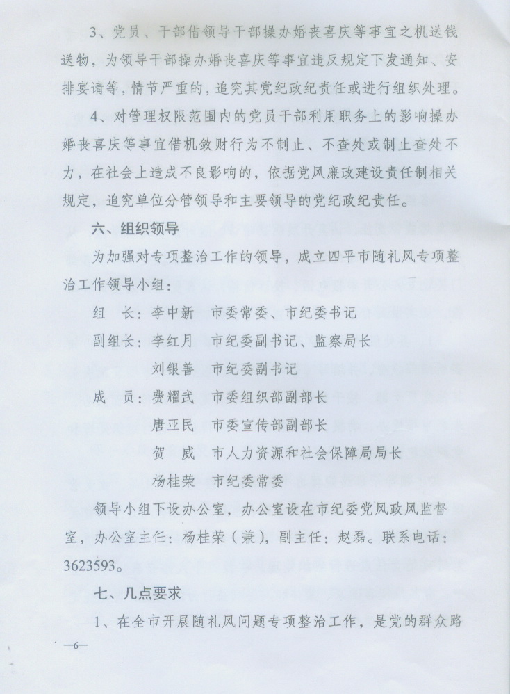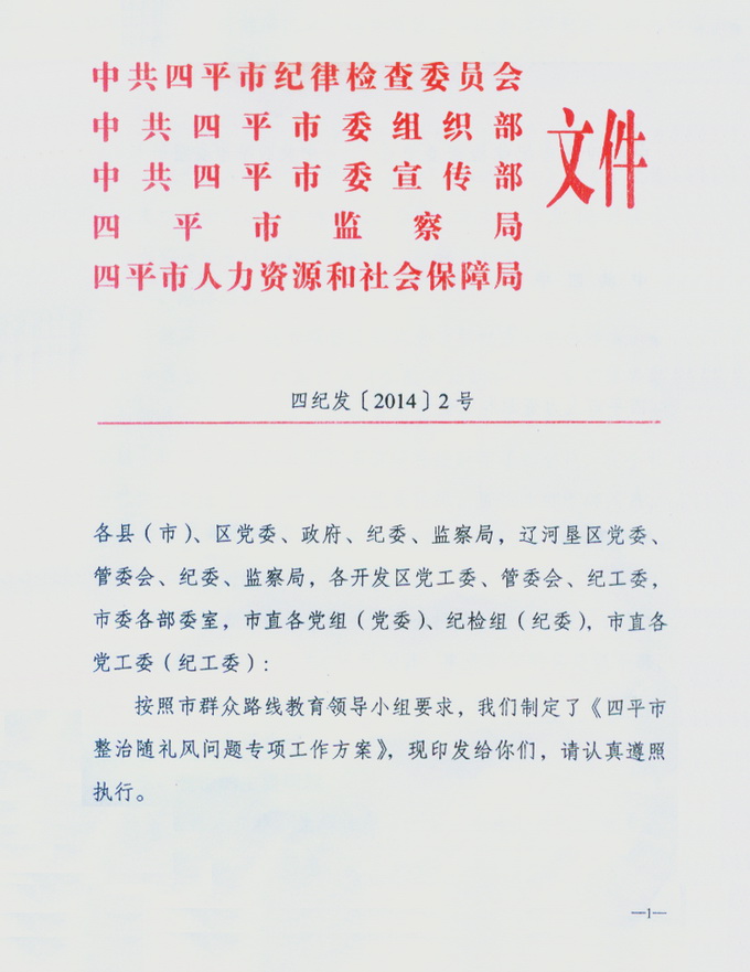 卫生局机关各科室、市直各医疗卫生单位: 现将市纪委、组织部、宣传部、监察局、人社局联发的《四平市整治随礼风问题专项工作方案》转发你们,请各单位、各部门合理安排时间组织人员传达学习,并于5月6日下班前将传达学习情况报卫生局监察室。联系电话:3266186,邮箱:spwsjc@163.com.