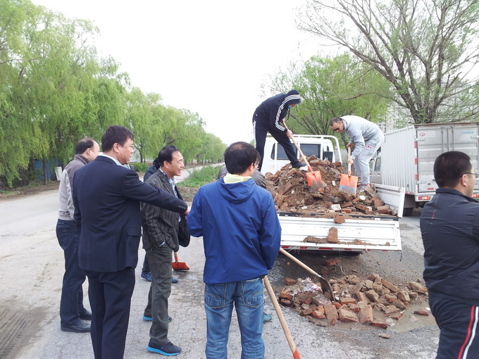 群众道路受损 干部教师垫坑 ——我校干部职工落实群众路线见行动 近日,绵绵细雨、车来车往,再次使铁西区政府至我校1.5公里路面严重受损,坑坑洼洼、积水较多,严重影响了过往车辆的通行,汽车公司因此暂时停运109路公交车铁西区政府至我校路段,一时间给我校师生及周边企业职工通行带来了极大不便。鉴于此,校领导立即采取措施加以解决。5月5日早,首先动员和组织有私家车的干部职工将在铁西区政府站点下公交车的同志接至学校,然后主动联合学校附近的德嘉电子仪表有限公司,迅速派出车辆和组织人力搬运砖头垫路坑。我校办公室、学生处、总务处等部门10余名干部教师参与活动。由于路长坑多,垫路过程较为辛苦。但在校领导的亲临指挥下,同志们充分发扬无私奉献的精神,争先恐后,积极抢干。风吹灰呛,鞋衣弄脏,臂腕酸痛,汗流浃背,他们却全然不顾,依然情绪高涨、干劲十足。经过一上午的辛勤劳动,终于将道路垫平,使109路公交车及时恢复正常通车,受到广大师生及周边企业职工一致好评。 在此要特别感谢以下参与垫路的同志,他们是:张立峰、赵军生、李亮、卢宝、王经纬、马玉然、张哲、韩冰、齐皓、方伟等干部教师。