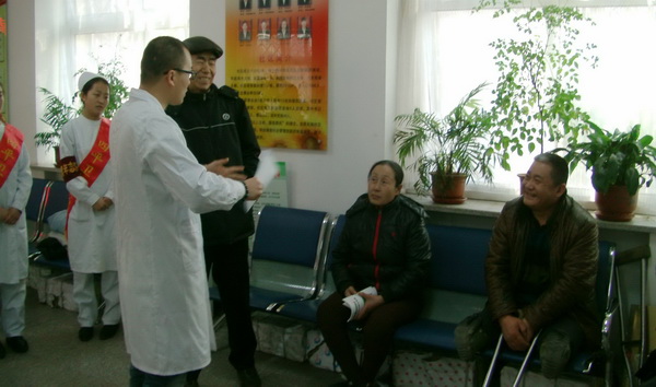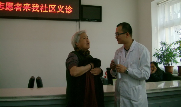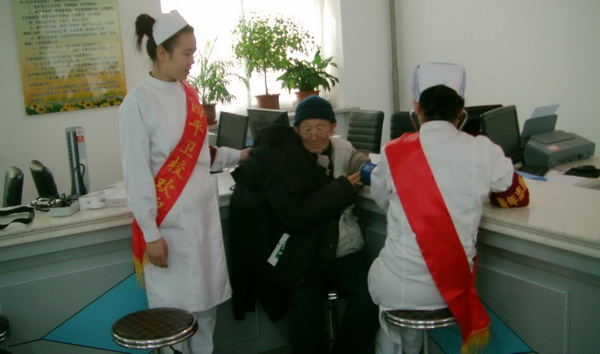 在校团委的倡导和组织下,3月6日下午,我校党员教师马玉然带领青年志愿者学生一行11人,到阳光社区开展了“学雷锋”义诊服务活动。他们充分利用医学专业优势和个人服务专长,为社区居民进行了义务健康知识讲座,并免费为居民测量血压,受到社区领导和居民的普遍欢迎和好评。市卫生局关工委常务主任(卫生局原党委副书记)戚明海也参与了此次活动。